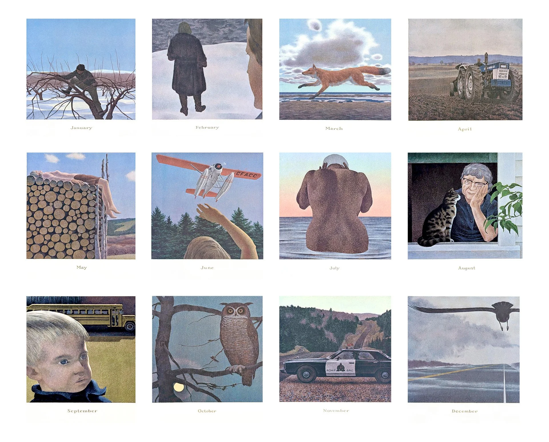 Alexander Colville is one of Canada’s most celebrated artists. Over the course of his career he became a master of inviting viewers into his distinct perspective. Most often categorized as a realist, Colville’s work speaks to something far beyond representations of landscapes, objects or people. The power in his work rests on the emotional tension he achieves. This tension is often quiet and indirect but overwhelming in effect.